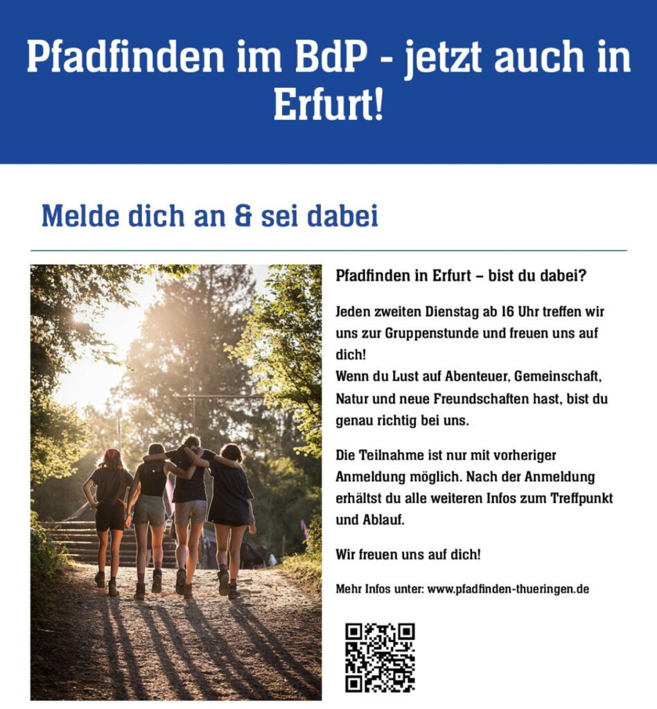 Wenn auch du zu den Pfadis in Erfurt möchtest, dann melde dich bei Bente: